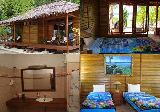 2.Kri eco resort and Sorido bay resort The western style look resort (sorido), Western style comforts in a traditional Papuan setting. Located on a beautiful deep lagoon and white sand beach on Kri Island, the dive resort is central to the most spectacular dive sites in the Raja Ampat. Kri Eco Resort is an Indonesian style resort and currently has 6 over-water guest bungalows. Most of the buildings contain two rooms and at least one sitting area. info : www.papua-diving.com